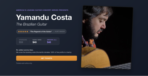| Dallas: Saturday Mar 7, 2026 7:30pm Westminster Presbyterian Church 8200 Devonshire Drive, Dallas, TX 75209 | Fort Worth: Sun Mar 8, 2026 2:30pm Kimbell Art Museum - Renzo Piano Pavillion Auditorium 3333 Camp Bowie Blvd, Fort Worth, TX 76107 |